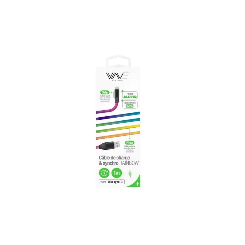Le câble USB Nylon Élégance RAINBOW connecte votre Smartphone à tous ports USB pour une synchronisation et une recharge efficaces. Sa fiabilité vous apporte la sécurité de fonctionner parfaitement avec tous vos appareils équipés de la connectique Lightning / Micro USB / Type-C. Grâce à ses finitions en nylon tressé il apporte une plus longue durée de vie contrairement au câble standard. Ses finitions Anti Dérapante vous permettent de débrancher / brancher votre câble sans aucune contrainte et sans la crainte de l’endommager.