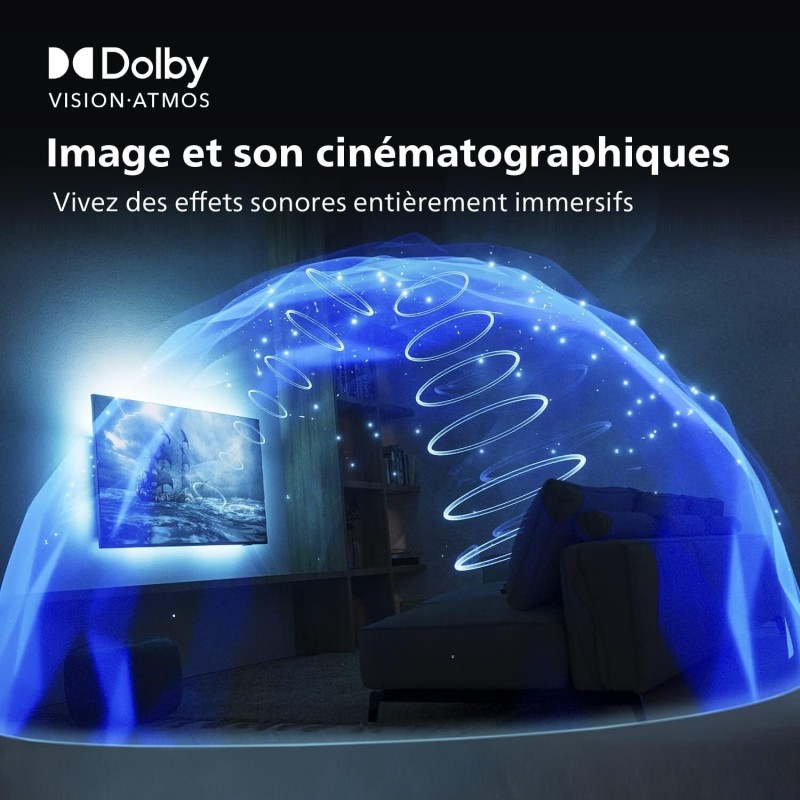 Grâce aux technologies Dolby Vision et Dolby Atmos intégrées au téléviseur 55OLED707 de Philips, vos films, émissions et jeux bénéficient d'une qualité visuelle et sonore incroyable. L'image est fidèle à la vision du réalisateur. Finie, la déception des scènes trop sombres pour comprendre ce qu'il se passe ! Entendez chaque mot clairement. Vivez des effets sonores entièrement immersifs.