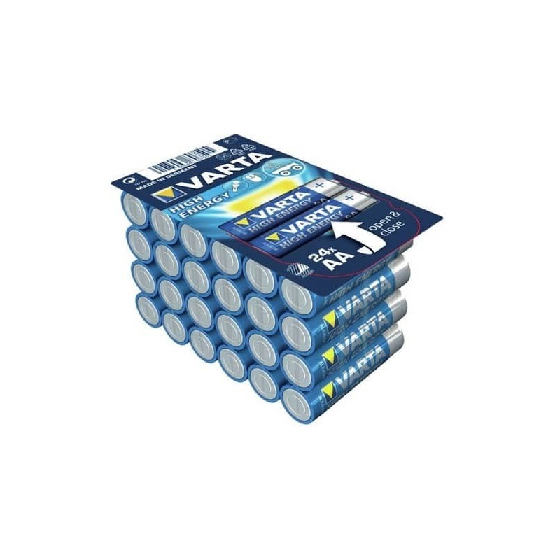 Varta High Energy AA. Type de batterie: Single-use battery, Taille de la batterie: AA, Technologie batterie: Alcaline. Hauteur: 50,5 mm, Diamètre: 1,45 cm.