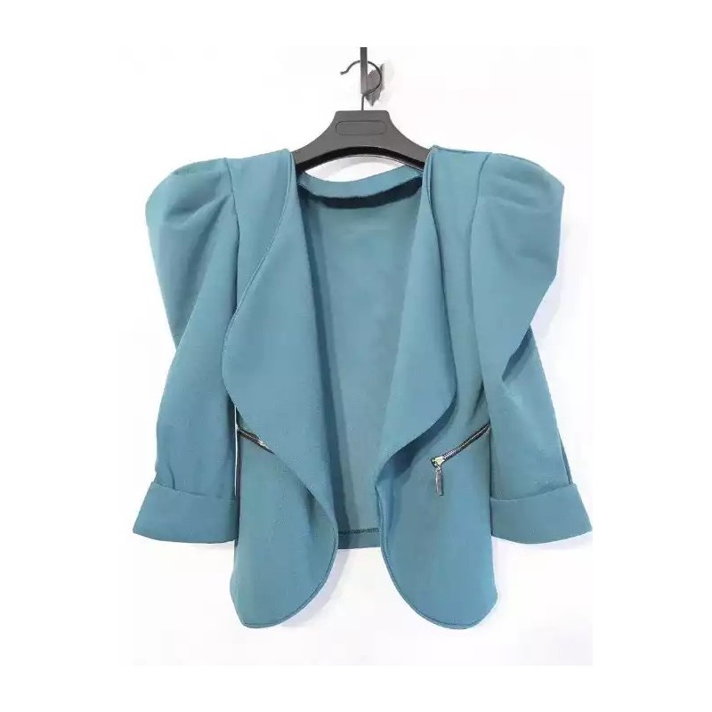 Blazer court à manches bouffantes turquoise TU